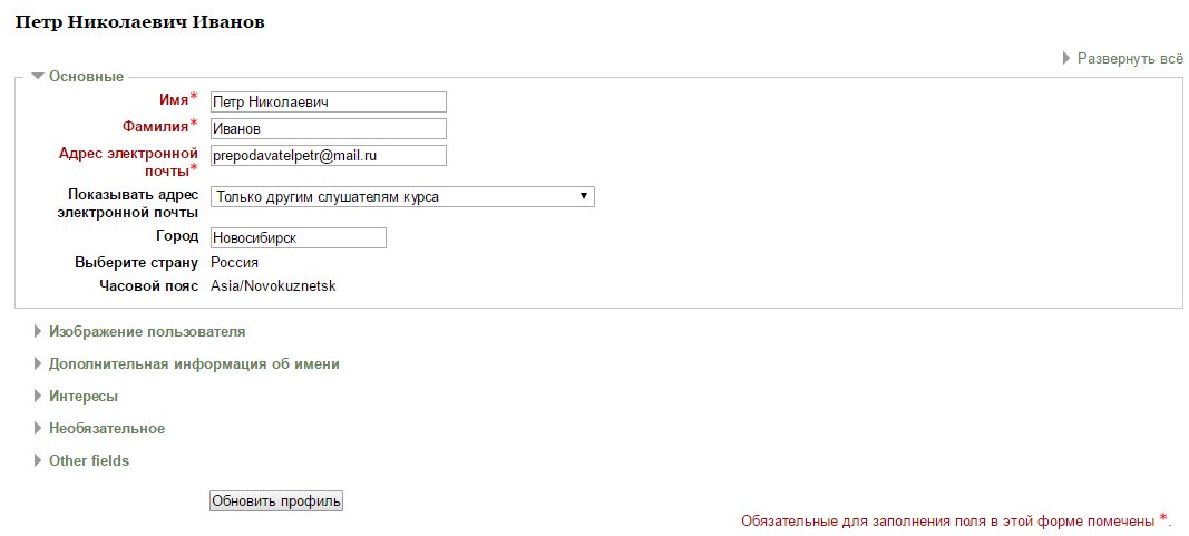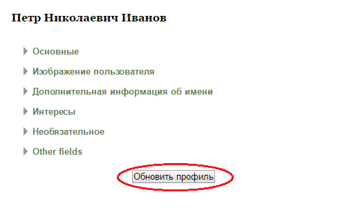 После заполнения нажмите кнопку «Обновить профиль» ( Рис 5).