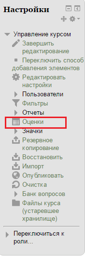 В разделе «Управление курсом» блока «Настройки» на главной странице курса выбрать «Банк вопросов» (Рис.1).
