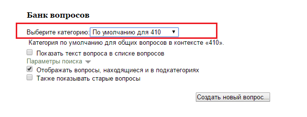- Категория – при необходимости можно изменить категорию, в которой будет создан вопрос (по умолчанию указана категория, выбранная перед нажатием кнопки «Создать новый вопрос»);