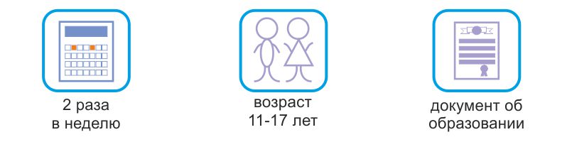 - Занятия проводятся 2 раза в неделю с 15:45 для учащихся в 1 смену и с 08:30 для учащихся во 2 смену
