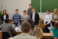 - Правовое ориентирование (нужно было отстоять свою позицию, представляя администрацию или профсоюз университета в юридически спорной ситуации; в этом конкурсе участникам нужно было импровизировать на ходу и уложиться в 4 минуты);