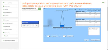 В ходе лабораторной работы студент проводит анимированный эксперимент, состоящий из серии опытов: выполняет расчеты, заполняет таблицы, проходит тест с контрольными вопросами. Отчет по результатам лабораторной работы проходит автоматизированную проверку с оценкой и сохраняется в архиве центрального портала вуза с возможностью дальнейшего контроля и обратной связи с преподавателем.