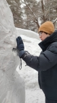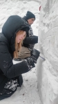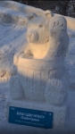 Из прямоугольной призмы 1,5х1,0х1,0 метра спрессованного снега ребятам нужно было вырезать фигуру медведя с бочонком меда. Эскиз из пластилина сделала ученица 2 класса ДХШ НГАСУ (Сибстрин) Ирия Бурнашова. Изготовление скульптуры заняло 5 часов. Все прошло дружно и весело!