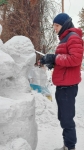 Обучающиеся Детской художественной школы НГАСУ (Сибстрин) сделали из снега скульптуру медведя с бочонком меда по басне И.А. Крылова «Медведь у пчел».