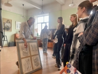 Завершающим этапом встречи стало посещение выставки детских и творческих работ в холле третьего этажа и творческой мастерской, где старший преподаватель кафедры Дизайна и искусств Сергей Мымриков рассказал школьникам об особенностях сдачи внутреннего вступительного испытания по рисунку. Успех, как подчеркнул Сергей Владимирович, – это резонанс системы ценностей и достижений, определяемых прилагаемыми усилиями. Именно поэтому для его достижения требуется подготовительная работа, которой необходимо уделить особое внимание.