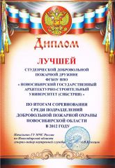 Диплом «Лучшей студенческой добровольной пожарной дружине НСО» вручен подразделению нашего университета