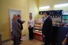 На торжественной церемонии открытия новое кафе руководителям университета, ректору Ю. Л. Сколубовичу и проректору по АХЧ Е. В. Григорьеву, представила его директор – Светлана Гладышева. Юрий Леонидович, поприветствовав собравшихся и перерезав красную ленту, выразил уверенность, что новое студенческое кафе с большим выбором блюд и приемлемыми ценами позволит улучшить качество питания в университете.