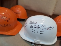 Стоит отметить и инициативу студентов 2 курса ИЭФ. Победители второго тура региональной олимпиады попросили представителей Министерства труда и социального развития Новосибирской области Ирину Дмитриенко и Людмилу Кучерявенко подписать фирменные каски Сибстрина.