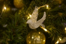 Юрий Сколубович снял с новогодней елки шарик, на котором написано желание, которое загадал один из маленьких жителей Новосибирской области.