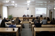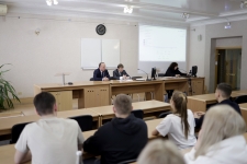 Почетного гостя представил ректор НГАСУ (Сибстрин) Юрий Сколубович. Во встрече также участвовала проректор по учебно-воспитательной работе и молодежной политике Марина Шумкова. Они рассказали студентам о целях создания кафедры Минстроя РФ, преимуществах программы и перспективах их дальнейшего трудоустройства.