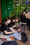«Само название «Синтез» мы взяли от слова «фотосинтез» и оно означает смешение одной сферы с другой – творчества и экологии. Посредством создания экологичного пространства студенты развивают креативное мышление и бережливое отношение к природе, делают первые шаги к осознанному потреблению. «Синтез» – это в первую очередь место для расслабления. Каждый сможет прийти сюда и отдохнуть в свободное от пар время, подышать свежим влажным воздухом – у нас в пространстве есть увлажнитель и много растений, которые прекрасно очищают воздух. На это будет каждый день отведен фиксированный промежуток времени. Вся мебель в пространстве сделана из вторсырья, старой мебели и вещей. Пуфики мы шили сами из отрезков ткани и одежды, реставрировали старую мебель, вообще делали все здесь своими руками», – рассказала Анастасия Снигур на открытии проекта.