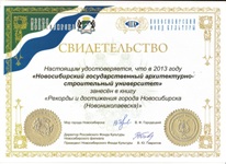 НГАСУ (Сибстрин) вошел в книгу рекордов Новосибирска НГАСУ (Сибстрин) представлен в издании как первый в Сибири архитектурно-строительный институт, ставший первым в Сибири вузом архитектурно-строительного профиля. |