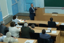 С докладом о планах совершенствования материально-технической базы университета в 2014 году выступили проректоры В.В. Дегтярев и Е.В. Григорьев. Речь, в частности, шла о совершенствовании лабораторной базы вуза и необходимых ремонтно-строительных работах в учебных корпусах и общежитиях.