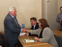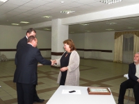В завершение состоялось торжественное вручение почетных грамот и благодарственных писем членам Попечительского совета за содействие в укреплении и совершенствовании материально-технической базы университета. Почетными грамотами были награждены генеральный директор ООО «Дискус плюс» А.Ю. Джулай, президент ООО «ПСК Сибирь» В.Д. Червов, руководитель отделения ВСД ООО «КНАУФ Гипс» в г. Новосибирске В.О. Абрахин, генеральный директор ООО «Генинжпроект» Л.Ф. Орлова, генеральный директор ОАО «Новоникстрой» В.А. Бобров, генеральный директор ЗАО «СибПродМонтаж» С.Д. Ковальский.