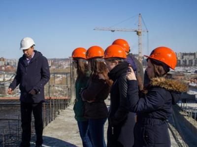 Связь студентов с производством осуществляется не только в период практик. Но и во время учебного процесса преподаватели кафедры ТОС устраивают экскурсии на строительные площадки. Так профессор В.В. Молодин в курсе изучаемой дисциплины «Современные строительные технологии» показывал студентам строительство площадки волейбольного комплекса (см. фото). А профессор Виноградов А.Б. был с группой магистрантов 2-го курса на возведении подземного паркинга ООО «Оазис». Посещение студентами строящихся объектов показано на фотографиях.