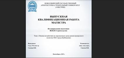 - Белова О.Ю. Проблемы утилизации фильтрационной жидкости и термической обработки свалочного газа на примере полигонов ТКО Новосибирской агломерации (рук-ль Карелин Д.В.).