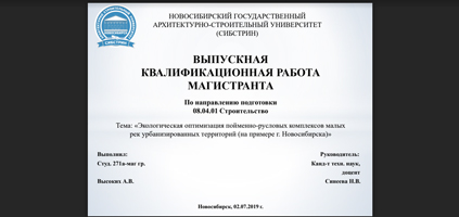 Высоких А.В. Экологическая оптимизация пойменно-русловых комплексов малых рек урбанизированных территорий (на примере г. Новосибирска) (рук-ль Синеева Н.В.) |