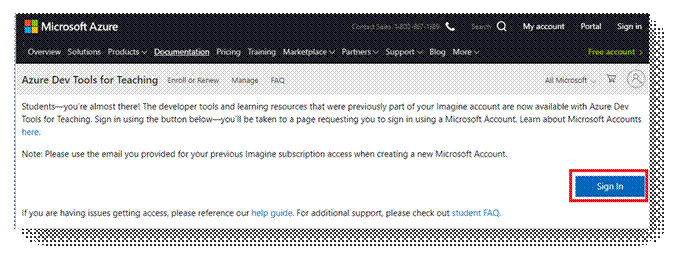 https://aka.ms/devtoolsforteaching и открыть страницу входа по кнопке Sign In: